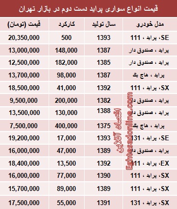 پراید دست دوم در بازار چند؟ (جدول)