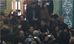 خودروی احمدی‌نژاد در حیاط مسجد پارک شده بود و هنگام خروج در زیر برف و باران در بین ازدحام جماعت گیر افتاد که با کمک محافظان و نیروی انتظامی به زحمت باز شد.