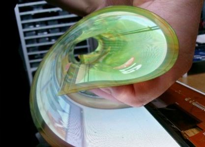 ضخامت این تلویزیون کمتر از یک میلی متر بوده و به وسیله آهن ربا به دیوار می چسبد.این تلویزیون دارای یک بخش پشتی آهنربایی است که به دیوار چسبانده می شود و سپس تلویزیون روی آن قرار می گیرد.