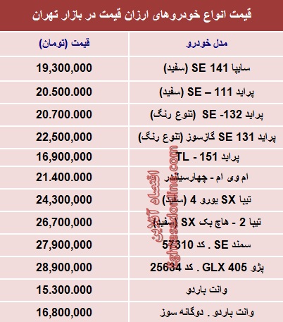 با 30 میلیون‌ تومان چه ماشینی بخریم؟ (جدول)