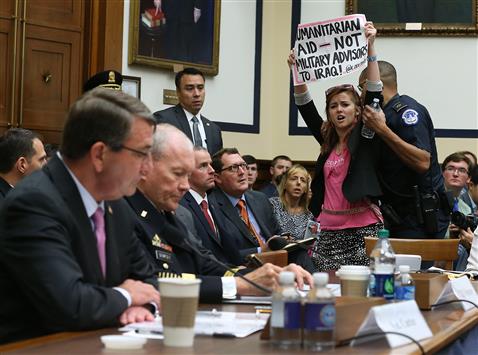 عصرایران - اشتون کارتر وزیر دفاع آمریکا به هنگام سخنرانی در کنگره این کشور با اعتراض یکی از حاضران روبه رو شد. این فرد با در دست داشتن تابلو نوشته ای به دخالت نظامی آمریکا در عراق اعتراض کرد.