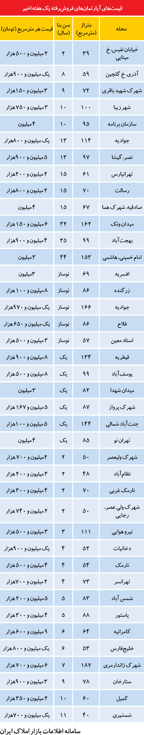 به طور مثال آپارتمانی 90متری در محله تهران ویلا با عمر بناي 10 ساله به قیمت 290 ميليون تومان به فروش رفت ومشابه این آپارتمان در همین منطقه 380میلیون تومان برای فروش گذاشته شده است.