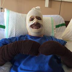این هنرمند از ناحیه دست و صورت دچار سوختگی شده است.