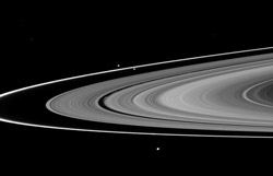 قمرهای پرومتئوس و پاندورا که تنها دو نمونه کوچک از 60 قمر سیاره زحل هستند، در طرفین حلقه F قرار داشته و به سمت داخل و خارج این حلقه حرکت میکنند.