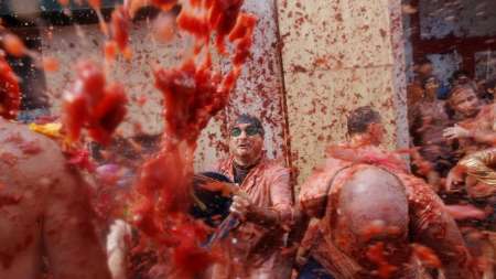 مردم شهر «بونیول» واقع در «والنسیای» اسپانیا در هفتادمین سالروز جشن گوجه فرنگی 150 تن گوجه را در خیابان های این شهر به سمت هم پرتاب کردند.