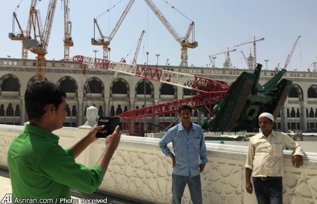 عکس یادگاری با جرثقیل سرنگون شده در مسجدالحرام