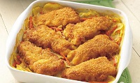 در آخر ماهی هایی که آرد سوخاری خورده اند را روی آن چیده و درون فر به مدت 35 دقیقه بگذارید.