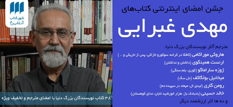 شهرکتاب آنلاین جشن امضای اینترنتی کتاب‌های «مهدی غبرایی» را از روز شنبه 28 آذر برگزار کرده است و تا 11 دی‌ می‌توانید ترجمه‌های غبرایی را با تخفیف ویژه از شهر کتاب آنلاین تهیه کنید.