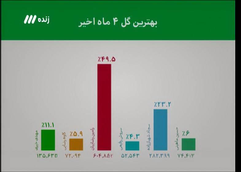 مخاطبان برنامه نود رامین رضاییان را به عنوان زننده بهترین گل 4ماه ماه اخیر لیگ برتر انتخاب کردند. در نظرسنجی پیامکی برنامه دوشنبه شب گل های رفیعی ، شهباززاده ، ماهینی ، کاوه رضایی ، خیری و رضاییان نامزد انتخاب این عنوان بودند که در آخر شوت رضاییان با 49 درصد آرا به عنون بهترین بازیکن انتخاب شد.