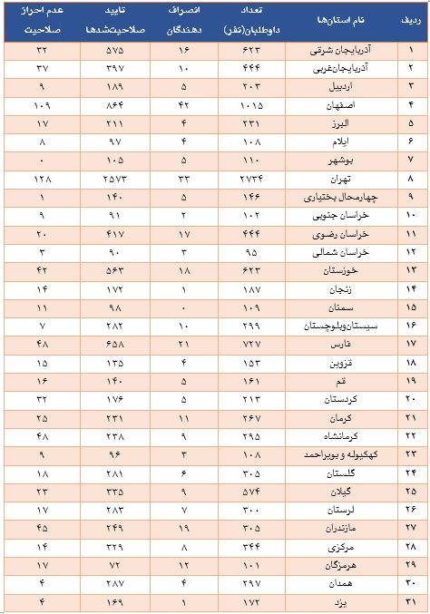 جدول تأیید صلاحیت ها در کشور