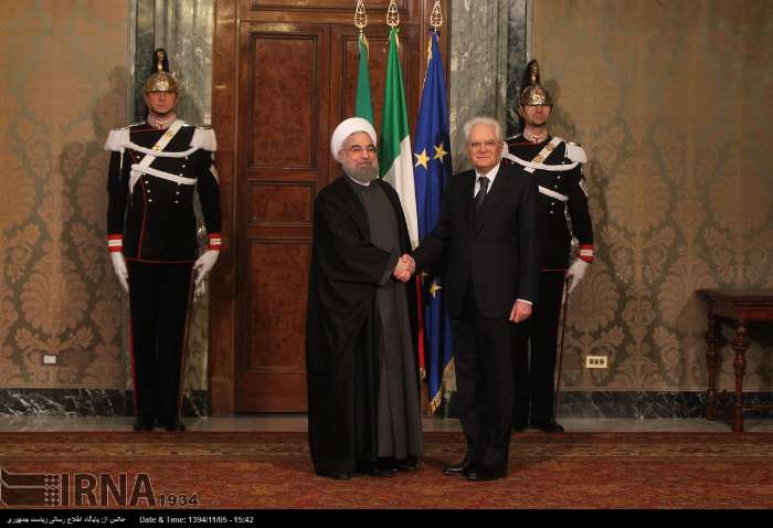 استقبال از روحانی در کاخ ریاست جمهوری ایتالیا توسط رئیس جمهوری این کشور
