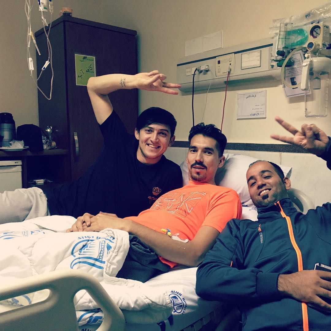 سردار آزمون که بعد از اردوی تیم ملی به استراحت می‌پردازد امشب در بیمارستان آتیه تهران حضور یافت تا از فرهاد قائمی، همشهری گنبد کاووسی خود که به دلیل مشکل ریوی بستری است، عیادت کند.