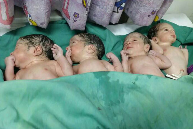 یک مادر قمی در دومین زایمان خود نوزادان چهار قلو به دنیا آورد، این نوزادان یک دختر و سه پسر هستند.