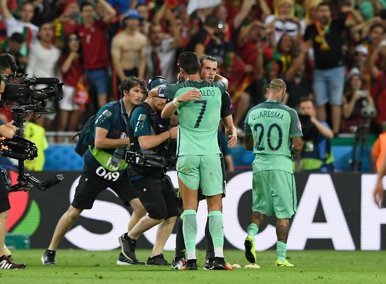 در پایان دیدار امشب پرتغال- ولز، کریس رونالدو به سمت گرت بیل رفت و با درآغوش گرفتن او، تلاش کرد ناراحتی اش را تسکین بدهد.به گزارش "ورزش سه"، رونالدو بعد از سوت پایان بازی به سوی بیل رفت و برای لحظاتی با او صحبت کرد تا نشان بدهد همانطور که از صعود تیمش به فینال خوشحال شده، ناراحتی هم تیمی اش را فراموش نکرده است.