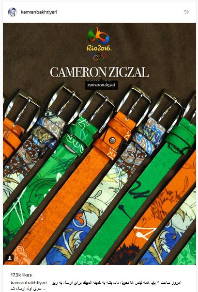 عصر ایران- کامران بختیاری طراح لباس های کاوران المپیک در اینستاگرامش عکسی از کمربند ورزشکاران کشورمان را منتشر کرد: