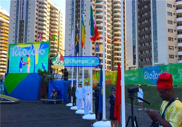 پرچم مقدس جمهوری اسلامی ایران طی مراسمی ویژه در دهکده بازیهای المپیک ٢٠١٦ ریودوژانیرو به اهتزاز در آمد.