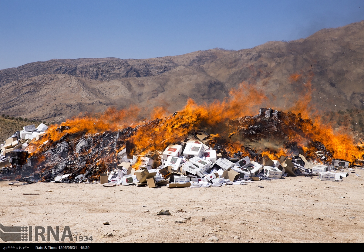 آتش زدن سیگار قاچاق در شیراز (عکس)