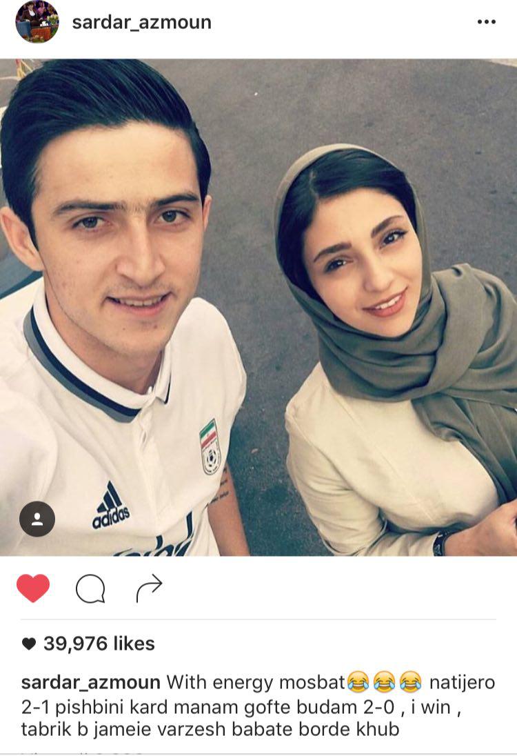 سردار آزمون مهاجم تیم ملی پس از برد تیم ملی برابر قطر در صفحه اینستاگرامش عکش با هستی مهدوی از بازیگران سینما را منتشر کرد و نوشت:نتیجه را 2-1 پیش بینی کرده بود اما من 2-0 پیش بینی کرده بودم. من پیروز شدم. تبریک به جامعه ورزش بابت برد خوب!