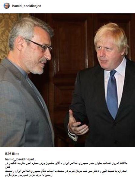 عکس اینستاگرام حمید بعیدی نژاد سفیر جدید ایران در لندن از ملاقات با جانسون وزیر خارجه بریتانیا و تقدیم رونوشت استوارنامه اش