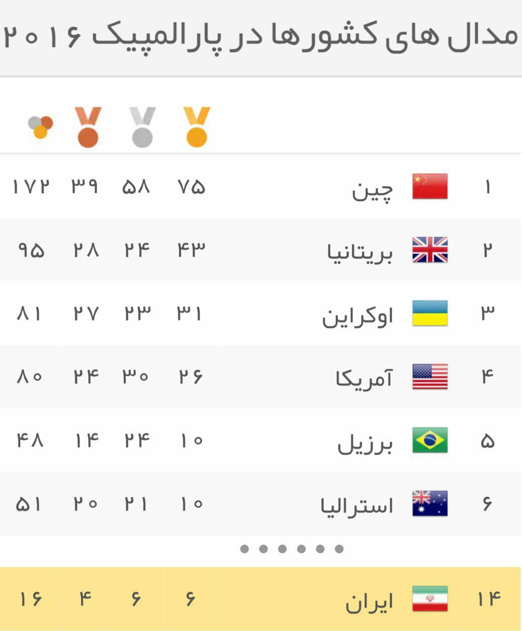 جدول توزیع مدال پارالمپیک (جدول)
