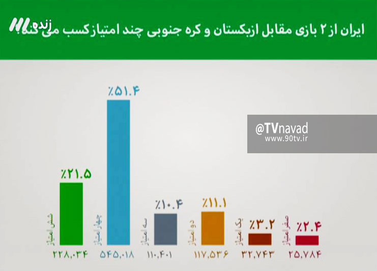 در این نظر سنجی که بیش از یک میلیون نفر شرکت کرده بودند 21 درصد به کسب 6 امتیاز رای داده بودند. بیش از 51 درصد به کسب 4 امتیاز امید داشتند. 11 درصد برای ایران 2 امتیاز کنار گذاشته بودند ، 10 درصد 3 امتیاز ، 3 درصد یک امتیاز و 2 درصد صفر امتیاز.