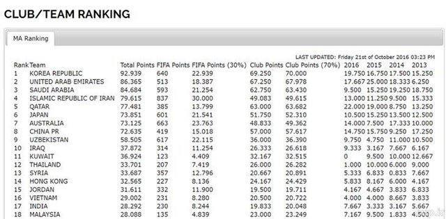 طبق آخرین جدولی که در ماه اخیر اعلام شده فوتبال ایران در رتبه چهارم آسیاست و همچنان سهمیه اش نسبت به سال قبل کاهش پیدا کرده است.