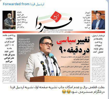 نشریه اردبیل فردا به دلیل ریزش شدید برف نتوانسته روزنامه خود را چاپ نماید و به همین دلیل آن را به صورت آنلاین از طریق تلگرام برای علاقمندانش منتشر کرده است.