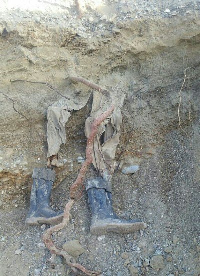 وی گفت: از این شخص تنها یک تکه استخوان بدن و سه عدد شانه، کیف کوچک نگهداری وسایل شخصی و پول 200 تومانی کاغذی، چکمه، لباس و یک عدد ساعت مچی برجای مانده است.