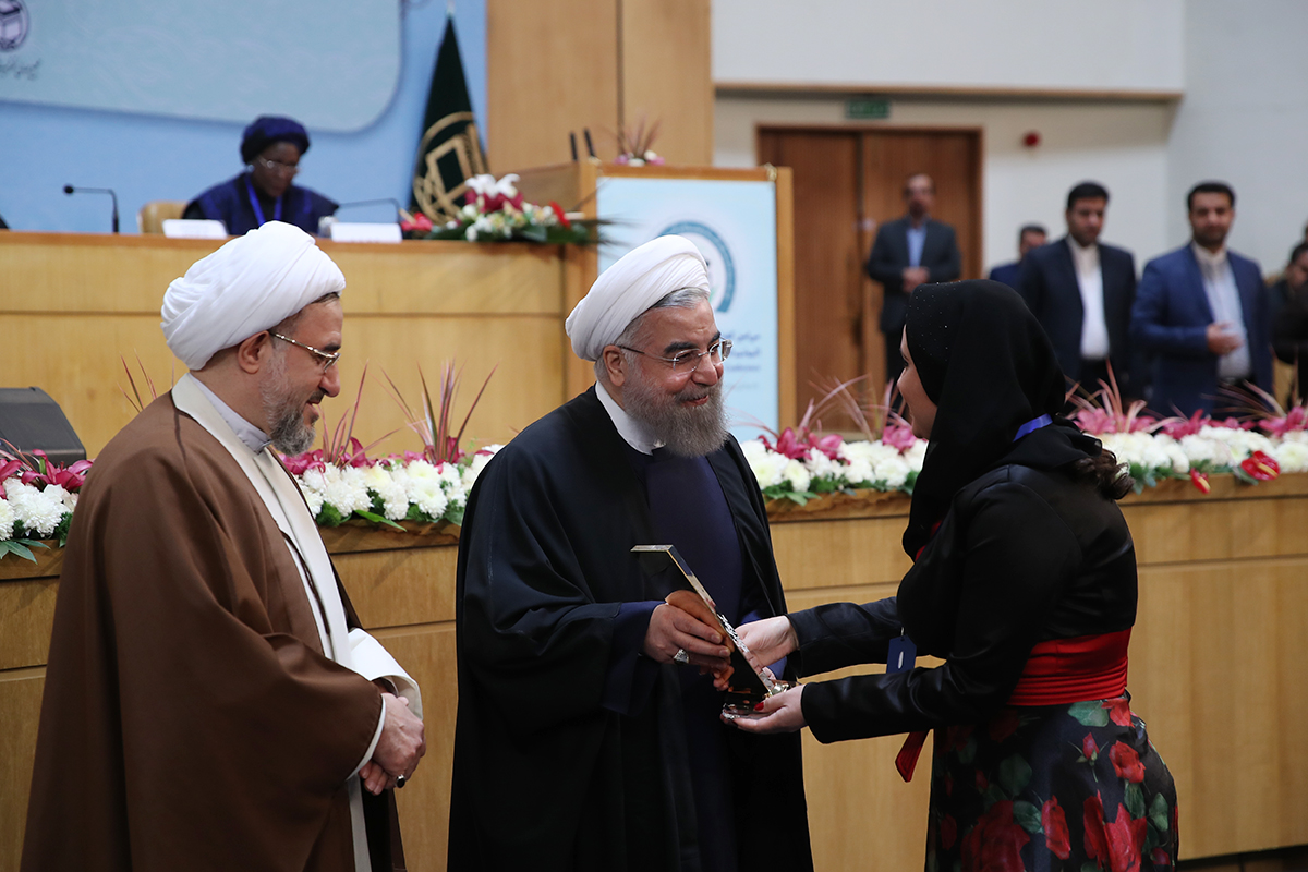این جوایز توسط حسن روحانی رئیس جمهور ، آیت الله اراکی دبیرکل مجمع تقریب مذاهب اسلامی، هاشم میرزاخانی دبیر جشنواره و دواران بخشهای مختلف اهدا شد و جوایز بخش ملی نیز روز شنبه 27 آذر در مراسم اختتامیه اهدا می شود.