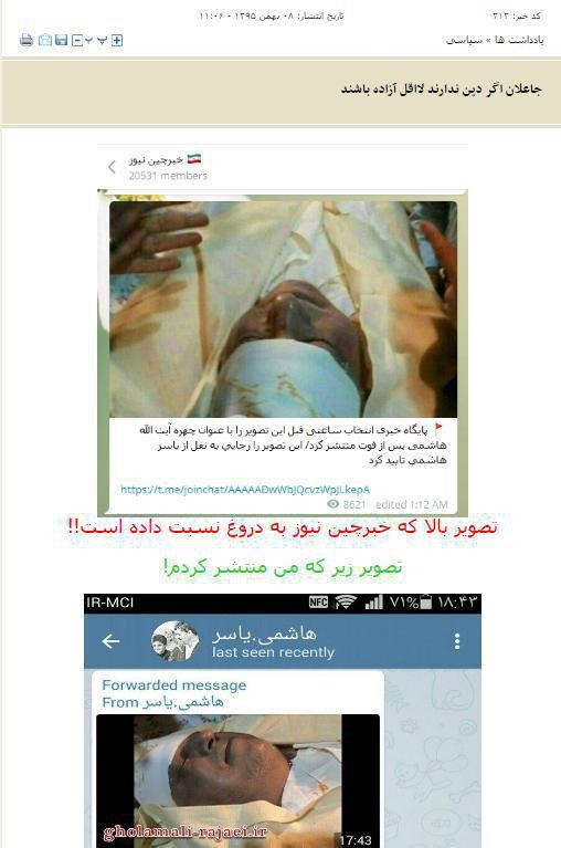 این سایت با درج عکس دستکاری شده از قول من به دروغ نوشته رجایی هم این عکس را تاییدکرده!!! زمانه بسیار بدی شده و ایمان بعضی ها به تاراج جعل و دروغ برده شده است.