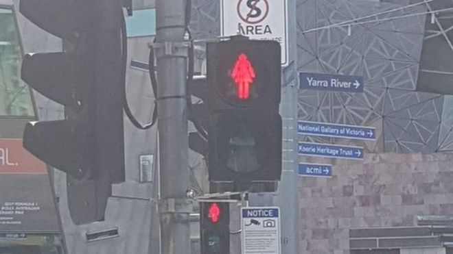 چراغ‌های عابر پیاده با آدمک‌هایی در لباس زنانه، به عنوان بخشی از برنامه ترویج برابری جنسیتی در استرالیا راه‌اندازی شد.