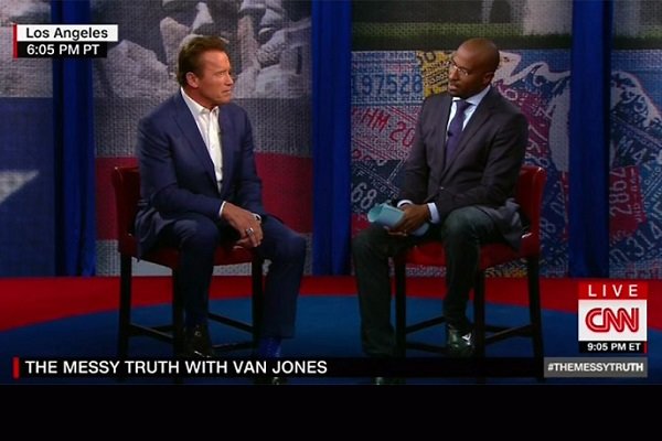 وقتی ون جونز مجری برنامه از شوارتزنگر درباره حرفهای اخیر ترامپ درباره حضور او در برنامه «کارآموز سلبریتی» سوال کرد، آرنولد گفت: من پوست کلفتم. این حرفها مرا اذیت نمیکند. اینها خیلی خندهدار است. این برنامه یک سوم مخاطبش را از دست داده چون آنها این نمایش را بایکوت کردند و این کار را کردند چون تو تهیه کنندهاش آقای دونالد ترامپ بود.