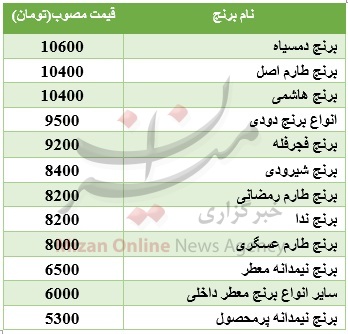 قیمت مصوب برنج ایرانی با توجه به نوع آن از حدود 5 هزار و 300 تا بیش از 10 هزار تومان متغیر بوده و ممکن است در خرده فروشیهای سطح شهر با قیمتهای بیشتری به فروش برسد.