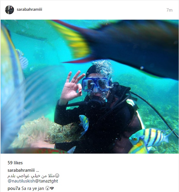 بازیگر «ایتالیا ایتالیا» در جزیره کیش غواصی کرد.سارا بهرامی بازیگر سینما و تلویزیون عکسی از خود در حین غواصی در اینستاگرام منتشر کرد.