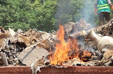در نپال بیش از ۴۰۰۰ قطعه از اعضای بدن حیوانات که در انباری نگهداری میشد، سوزانده شد.
