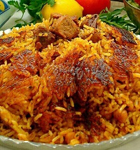 ابتدا دو و نیم پیمانه برنج را شستم و با نمک خیس کردم به مدت زمان یک ساعت کنار گذاشتم. پیاز را خرد کرده همراه گوشت با کمی روغن مایع وکره تفت دادم ادویه شامل زردچوبه یک قاشق چای خوری، فلفل سیاه و فلفل قرمز دوست داشتید می توانید نریزید. هل، درسته و چوب دارچین، یک قاشق غذاخوری زعفران دم کشیده تمام مواد را با هم مخلوط می کنیم. نخود آبگوشتی یک استکان خیس خورده، بعد آبجوش شش لیوان اضافه کردم. در قابلمه را گذاشتم و می گذاریم روی حرارت متوسط تا کاملا گوشت جا بیفتد و بپزد. و در آخر دو لیوان آب داشته باشد. اندازه یک قاشق غذاخوری رب گوجه اضافه کردم.