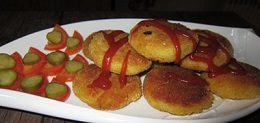 به اندازه یک نارنگی ازسیب زمینی بردارید و کف دست پهن کنید از مواد داخلش بگذارید و کمی پنیر پیتزا بریزید و بپیچید و ابتدا با تخم مرغ و سپس با آرد سوخاری آغشته و در روغن سرخ کنید.