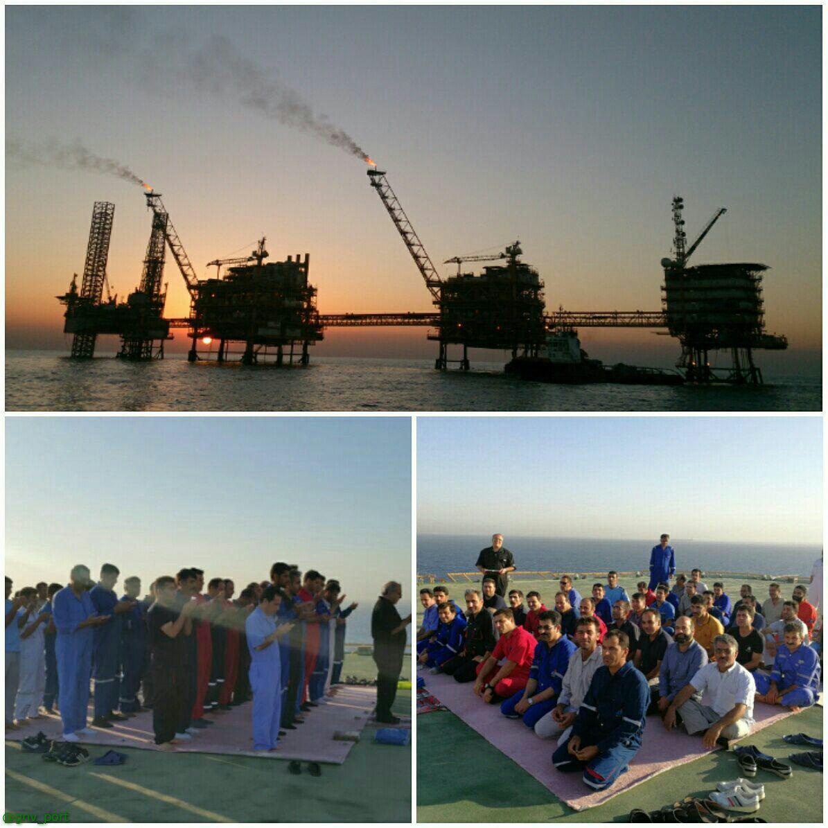 نماز عید فطر در سکوی نفتی (عکس)