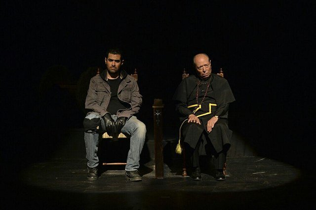 نمایش «اعتراف»  دومین تجربه‌ کارگردانی شهاب حسینی در تئاتر است و او علاوه بر کارگردانی، در کنار علی نصیریان بازی در نقش اصلی را نیز بر عهده دارد.