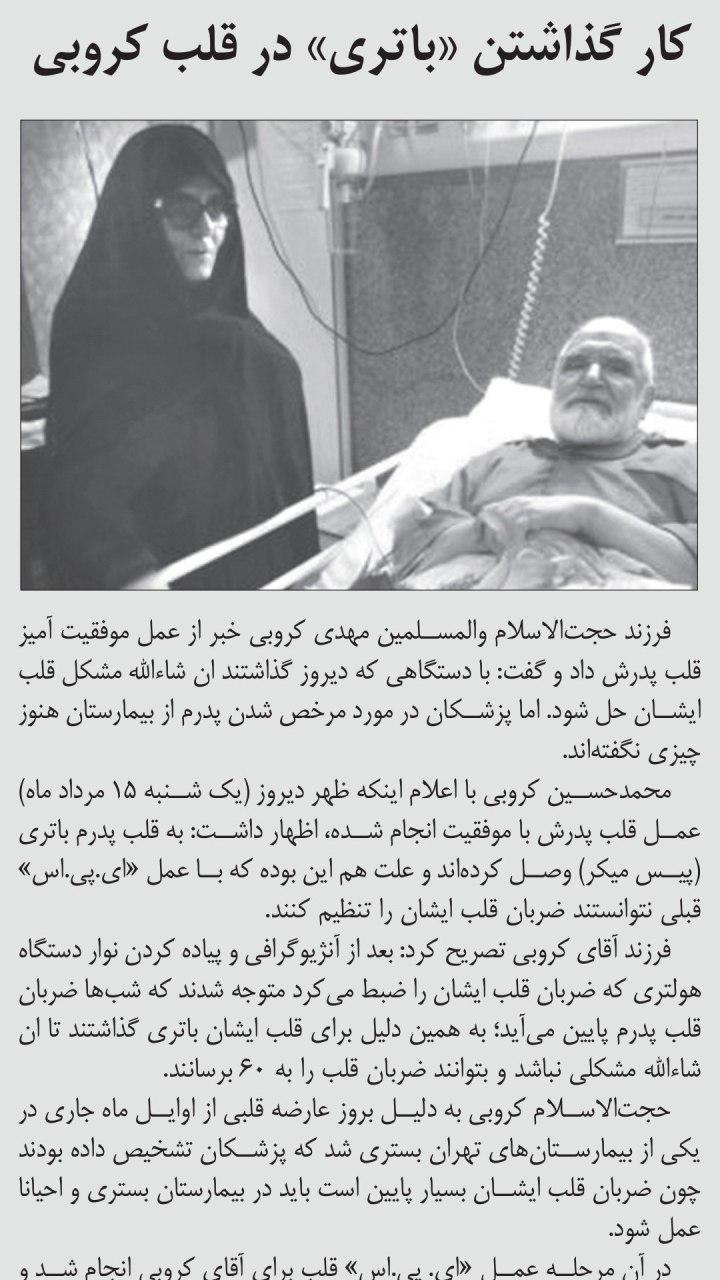 عصرایران - روزنامه جمهوری اسلامی در شماره امروز خود عکسی از مهدی کروبی در بیمارستان را منتشر کرد.