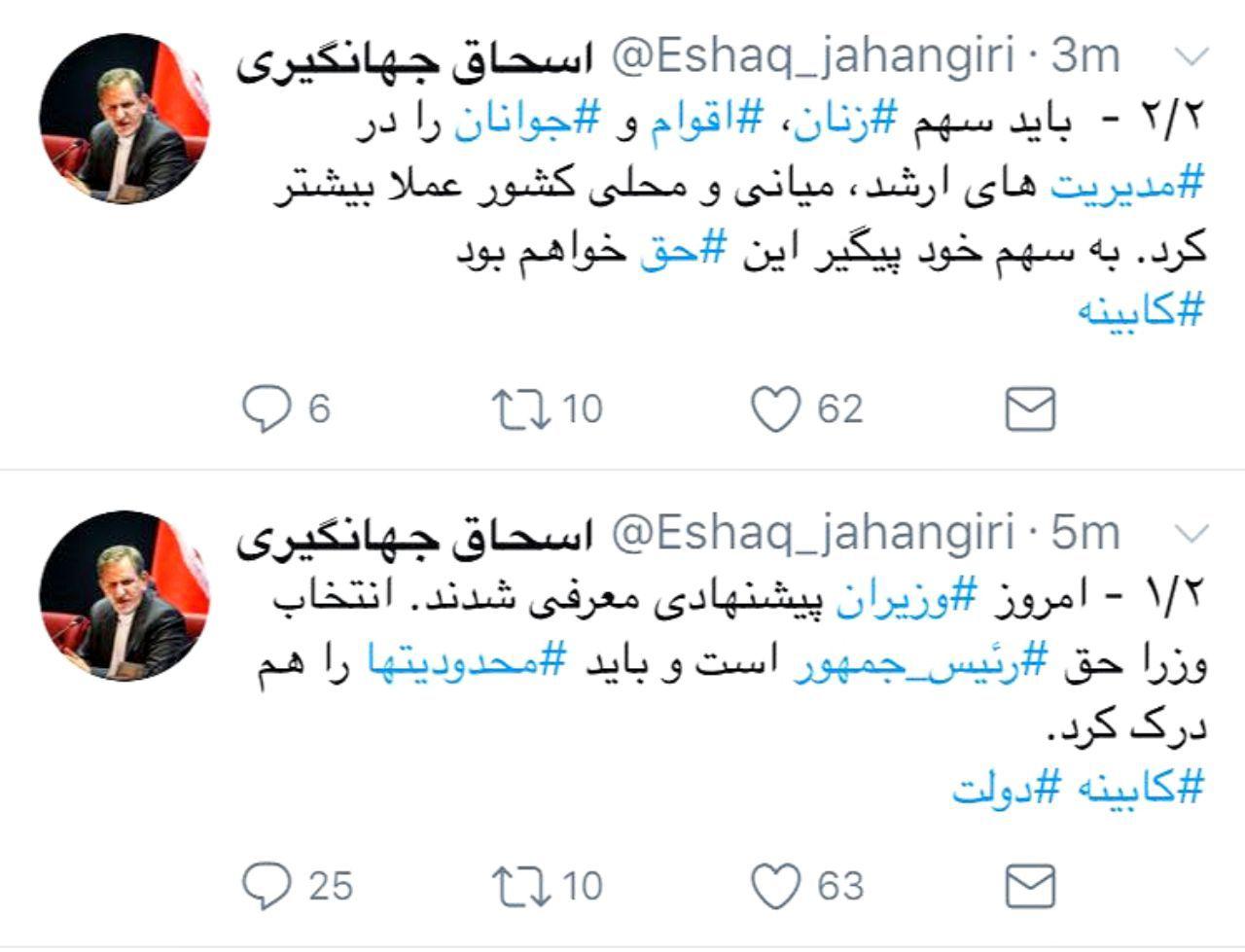 جهانگیری: پیگیر سهم زنان، اقوام و جوانان خواهم بود
