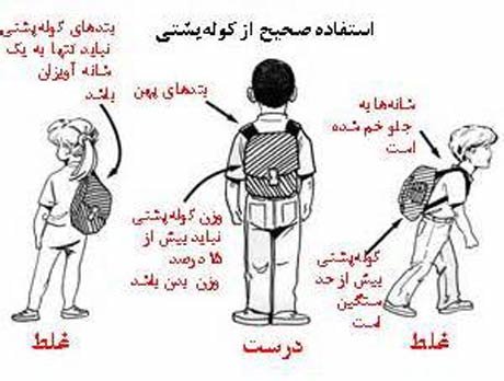 وی درباره چگونگی انتخاب کوله پشتی نیز توضیح داد و گفت: کوله پشتی باید چرمی یا برزنتی باشد تا علاوه بر استحکام، همگونی لازم با محتویات داخلی را حفظ کند. اندازه آن نیز باید متناسب با جثه دانش آموز باشد؛ به طوری که پس از آویختن آن حدود سه سانتی متر بالاتر از خط کمر قرار گیرد و بندهای آن طوری تنظیم شود که کوله را در ناحیه پشتی قرار دهد.