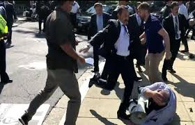 ویدئوها نشان می‌داد که همزمان با نظاره گر بودن رئیس‌جمهور ترکیه از خودرواش محافظان اردوغان اقدام به زدن معترضان می‌کنند.