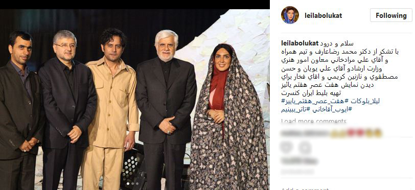 لیلا بلوکات بازیگر سینما و تلویزیون اینستاگرامش را با انتشار تصویری از پشت صحنه نمایش هفت عصر هفتم پائیز به روز کرد، در این عکس لیلا بلوکات به همراه دکتر محمدرضا عارف دیده می شود.