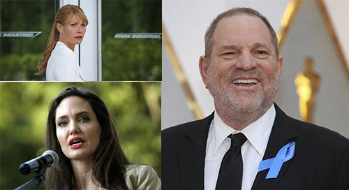 کوئینت پالترو و آنجلینا جولی از جمله سرشناسترین هنرپیشههای زنی هستند که مدعی شدهاند مورد آزار واینستین قرار گرفتهاند. به گفته پالترو این تهیهکننده وی را که برای ایفای نقش در فیلم «اما Emma » انتخاب شده بود به اتاقش در هتل فرا خوانده و خواسته بود او را ماساژ دهد.