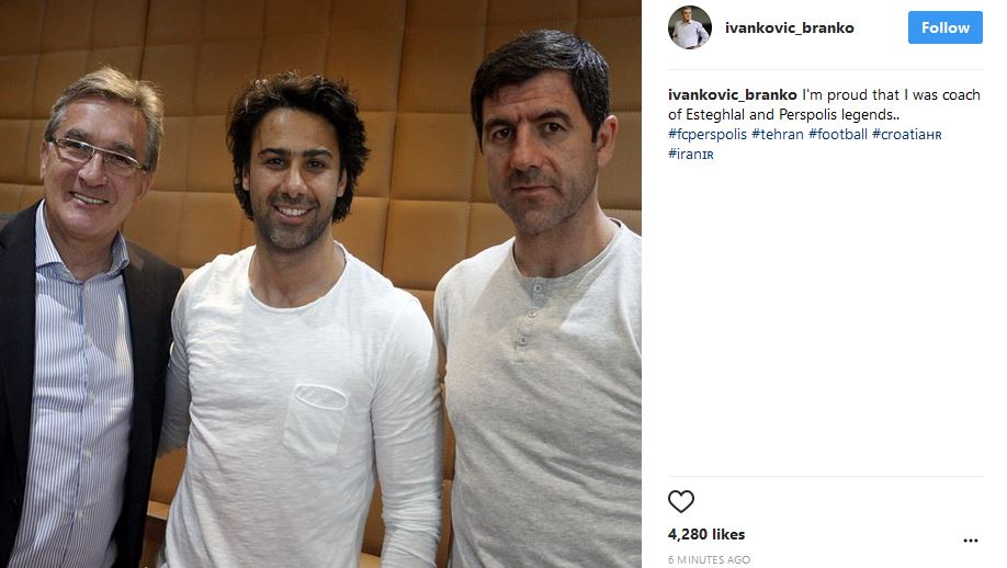 برانکو ایوانکوویچ سرمربی تیم فوتبال پرسپولیس عکسی از خود در کنار کریم باقری و فرهاد مجیدی منتشر کرد.