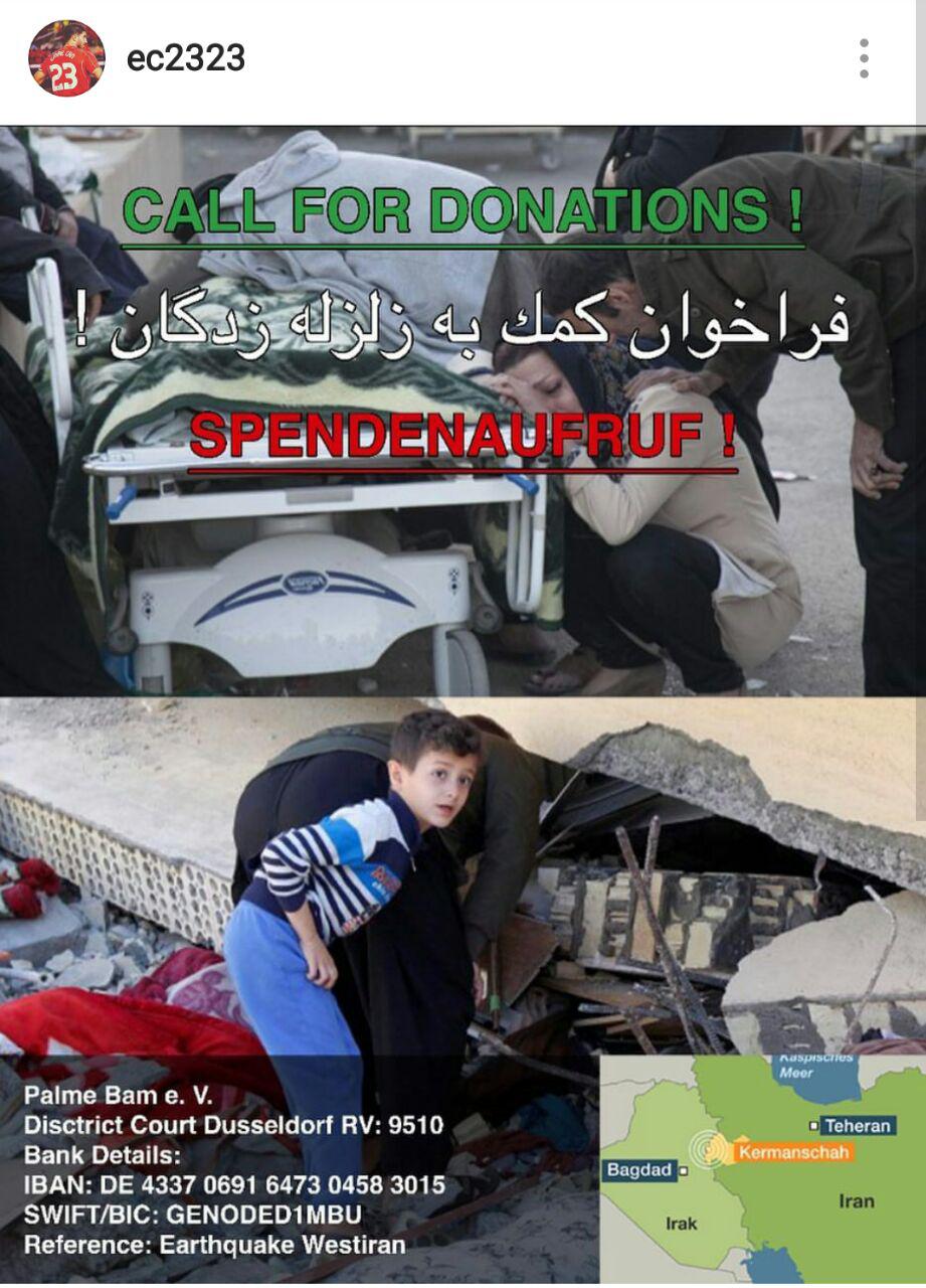 در این پست که دیدید او نوشته :« زلزله بزرگی در ایران و عراق باعث مرگ 430 نفر و مجروح شدن 6 هزار نفر شده است. طبق ادعای منابع ایرانی، نزدیک به 70 هزار نفر در پی این زلزله بی سرپناه و آواره شده اند و به علت سرمای شدید منطقه، نیاز به کمک های فوری دارند.»