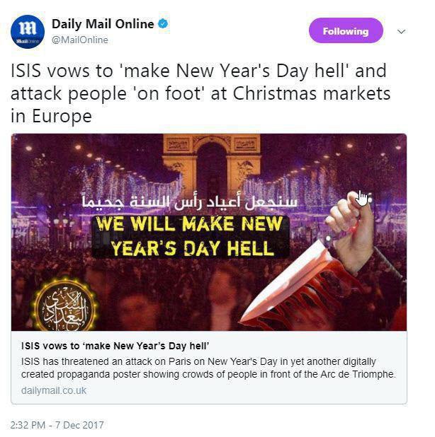 داعش: روز کريسمس را به روز جهنم تبديل مي کنیم/ هشدار داعش به فروشگاه هاي لوازم و تجهيزات جشن کريسمس