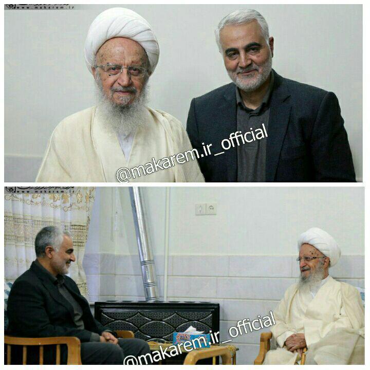 سرلشکر قاسم سلیمانی فرمانده سپاه قدس با آیت‌الله مکارم شیرازی در قم دیدار کرد.