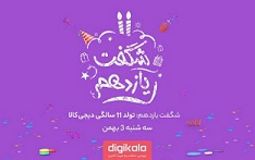 دیجی‌کالا به مناسبت تولد ۱۱ سالگی‌اش به مشتریان هدیه می‌دهد. کافی است روی کیک شگفت‌انگیز کلیک و شماره موبایل خود را وارد کنید. کد تخفیف ویژه‌ی تولد برای شما با پیامک ارسال می‌شود. فراموش نکنید کد تخفیف هر کسی متفاوت است.
